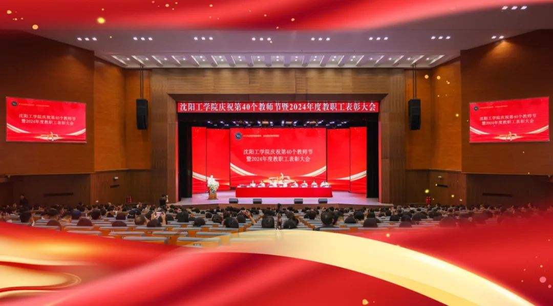 9月10日,沈阳工学院庆祝第40个教师节暨2024年度教职工表彰大会在图书馆礼堂举行,表彰沈工教职工在勇担时代使命中的突出表现,擘画新时代下沈工的发展蓝图。董事长王兆宝、党委书记胡晓梅出席会议并讲话,党委副书记、校长李康举,常务副校长公丕国,副校长石伟、刘艾秋、徐颖、杨秀英、周永昌出席大会。全体中层领导干部和教师代表参加大会。会议由公丕国主持。