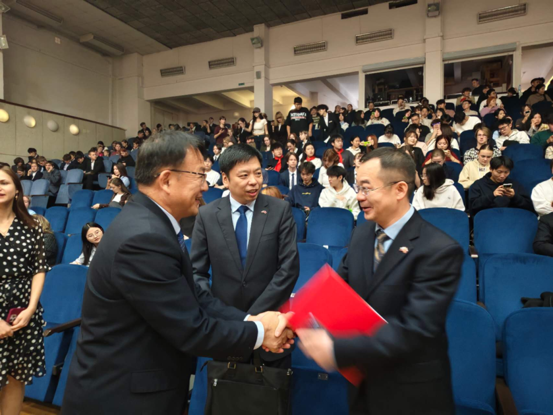 当日,我校代表团应邀出席国家研究型大学—伊尔库茨克国立理工大学主办的《贝加尔湖畔的中国文化艺术节》活动。活动上,李康举校长热情发表了致辞,并邀请更多俄罗斯学生到我校学习交流。活动前,李康举校长与中国驻伊尔库茨克代总领事亲切交谈。