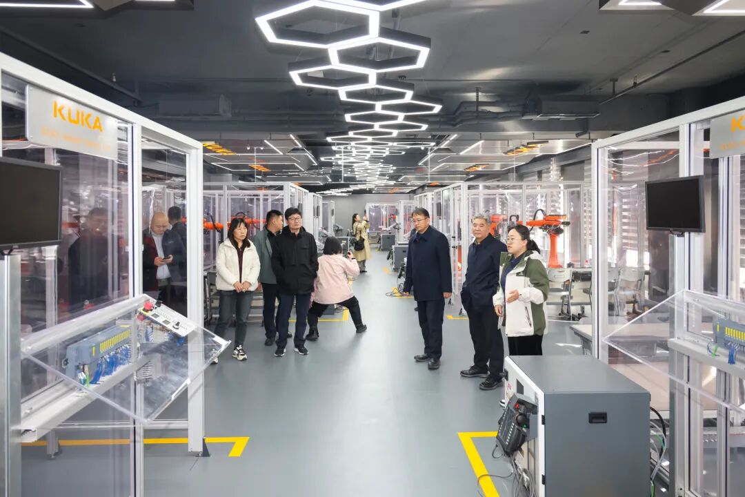 座谈会前,王建国一行参观了我校的华为-沈工现代产业学院、沈工-美的数字灯塔学院、沈工-南方测绘北斗时空信息产业学院和库卡授权工业机器人学院。