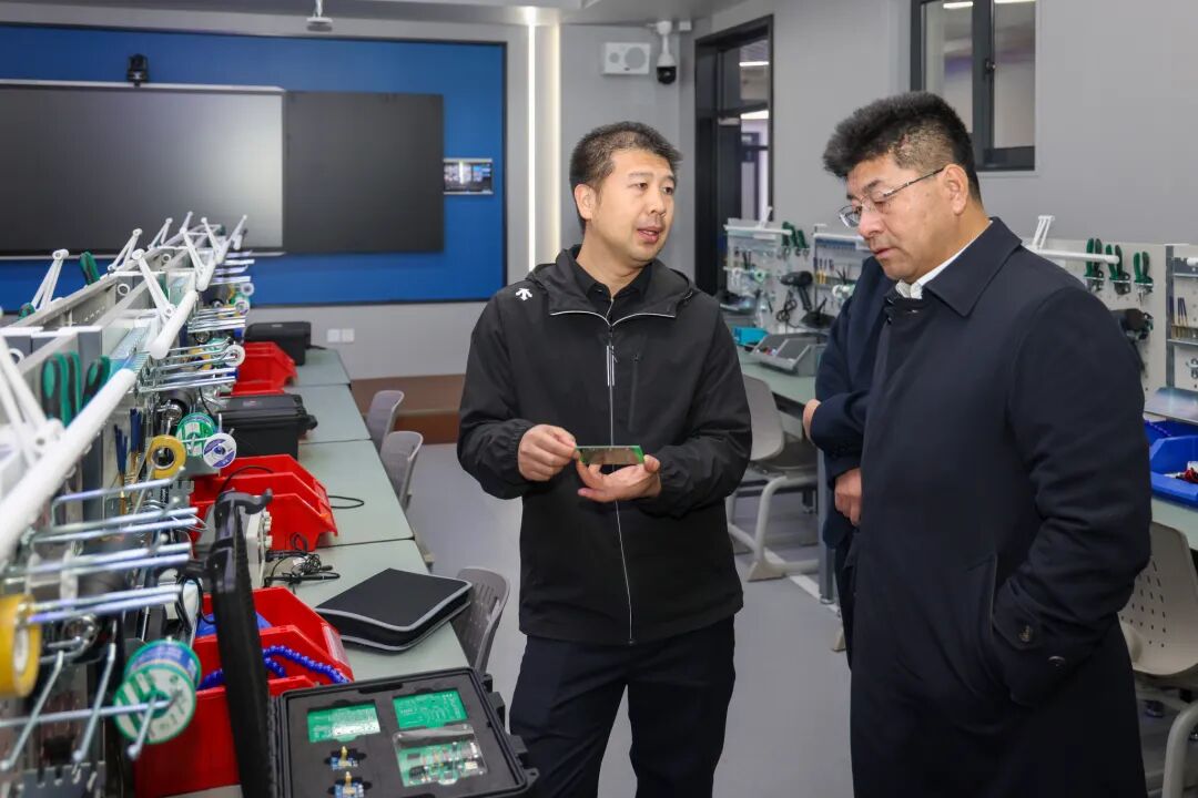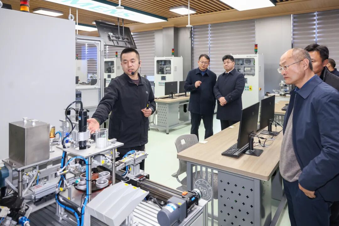 由国文一行参观了我校沈工-南方测绘北斗时空信息产业学院、华为-沈工现代产业学院、沈工-西门子学院等先进的实践教学中心、库卡授权工业机器人学院,实地调研产业学院在技术应用与工程实践融合方面的具体举措。