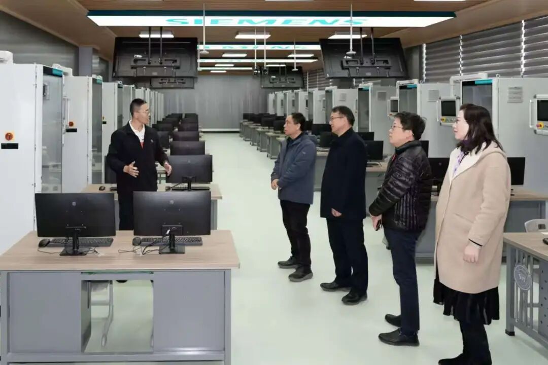 座谈会前,孙延鹏一行参观我校沈工-南方测绘北斗时空信息产业学院、先进制造中心、汽车实践教学中心、华为-沈工现代产业学院、智能高速五轴实践教学基地、沈工-美的数字灯塔学院、沈工-西门子学院和库卡授权工业机器人学院。