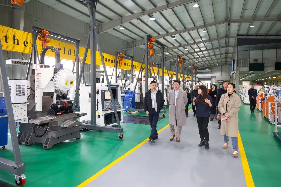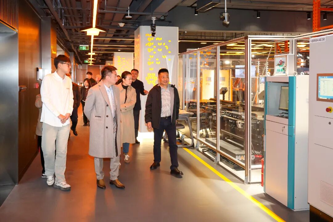 座谈会前,陈怡天一行参观了我校智能制造实践教学中心、库卡授权工业机器人学院。