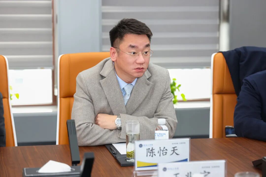 座谈会上,王兆宝对陈怡天一行的到来表示热烈欢迎,并详细介绍了学校的发展历程、办学特色、在数字化转型与人才培养方面取得的成果。他指出,吉林建筑科技学院在应用型人才培养方面特色鲜明,与我校有着广阔的合作空间。面对新时代高等教育改革发展的新要求,两校应携手并进,共同探索产教融合的新路径、新模式,特别是在现代产业学院建设方面,可以共享资源、互补优势,实现协同发展。
