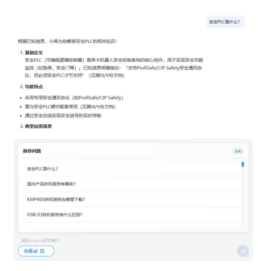 作为国内领先的工业智能知识库平台,“小库AI”可是大有来头!它基于海量工业知识训练,专注服务库卡机器人、KUKAAMR、自动化产线等智能装备领域,不仅能精准问答,还能搞定故障诊断、操作指导、维保咨询等专业需求,早已是众多高端制造企业青睐的“技术神器”。