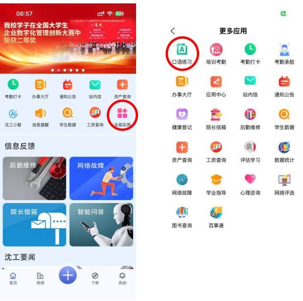 为推进数字化转型,用AI赋能教学提质,我校又有新动作!沈工智校APP正式上线“口语练习”模块,依托专业AI技术为同学们打造沉浸式口语练习场景,让英语听说训练随时随地、高效便捷。