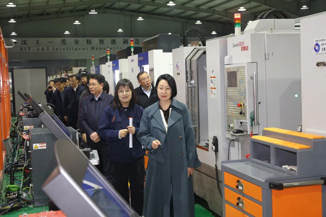 座谈会前,岳涛一行参观了我校浪潮工业互联网学院联合创新中心、沈工-美的数字灯塔学院、库卡授权工业机器人学院、沈工-南方测绘北斗时空信息产业学院、智能制造产业学院和华为-沈工现代产业学院。