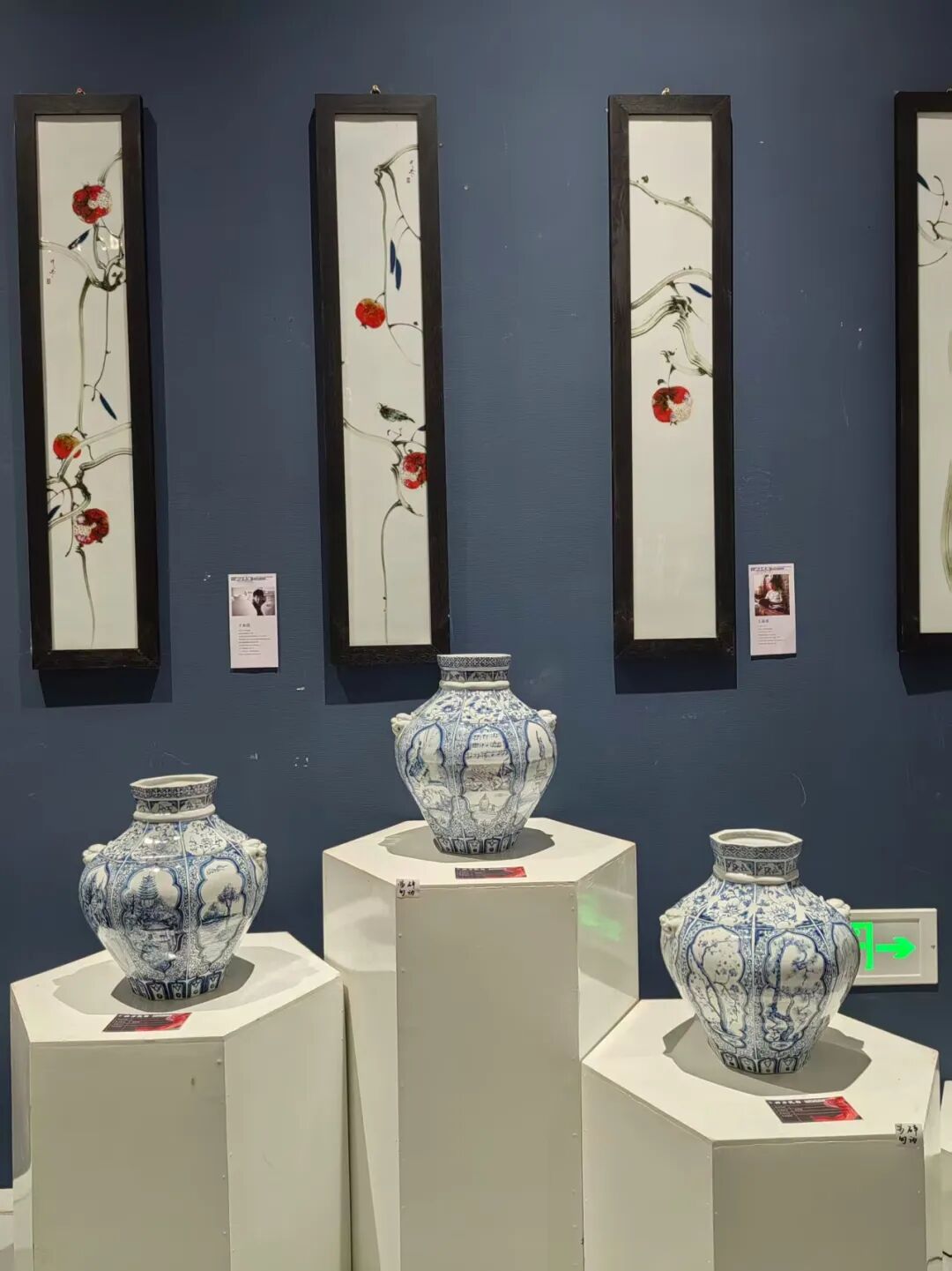 该展览是一次面向全省开展的陶瓷艺术与非遗文化的交流展示,展览以瓷为媒,通过集中式、全景式的呈现,全面反映了辽宁陶瓷领域的创作生态与发展水平,为推动非遗技艺传承创新搭建了高水准交流平台。展览将持续至10月18日,面向公众免费开放。54位中青年陶瓷艺术家应邀参展,用200余件精美的融合作品,讲述与瓷为伴的故事,用指尖技艺诠释对“北方瓷韵”的理解和认识。展览现场,我校大官窑陶瓷工作室6名教师的作品尽显专业水准,学校多名毕业生作品亦成为焦点——窦思瑶的瓷板画、韩煜堃的陶瓷文创作品等引得观众纷纷驻足欣赏。