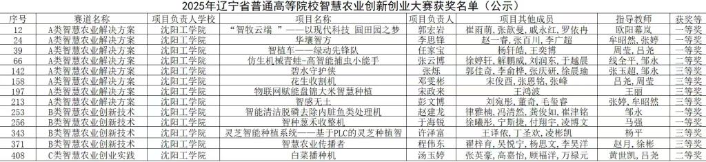 近日,2025年辽宁省普通高等院校智慧农业创新创业大赛获奖名单正式公布。我校参赛团队凭借敏锐的创新视角、扎实的专业功底与高效的实践能力,在全省众多高校的激烈角逐中脱颖而出,一举斩获13项大奖,获奖项目数量与质量双双创下历史新高,充分展现了我校在智慧农业学科建设与人才培养方面的卓越成效。