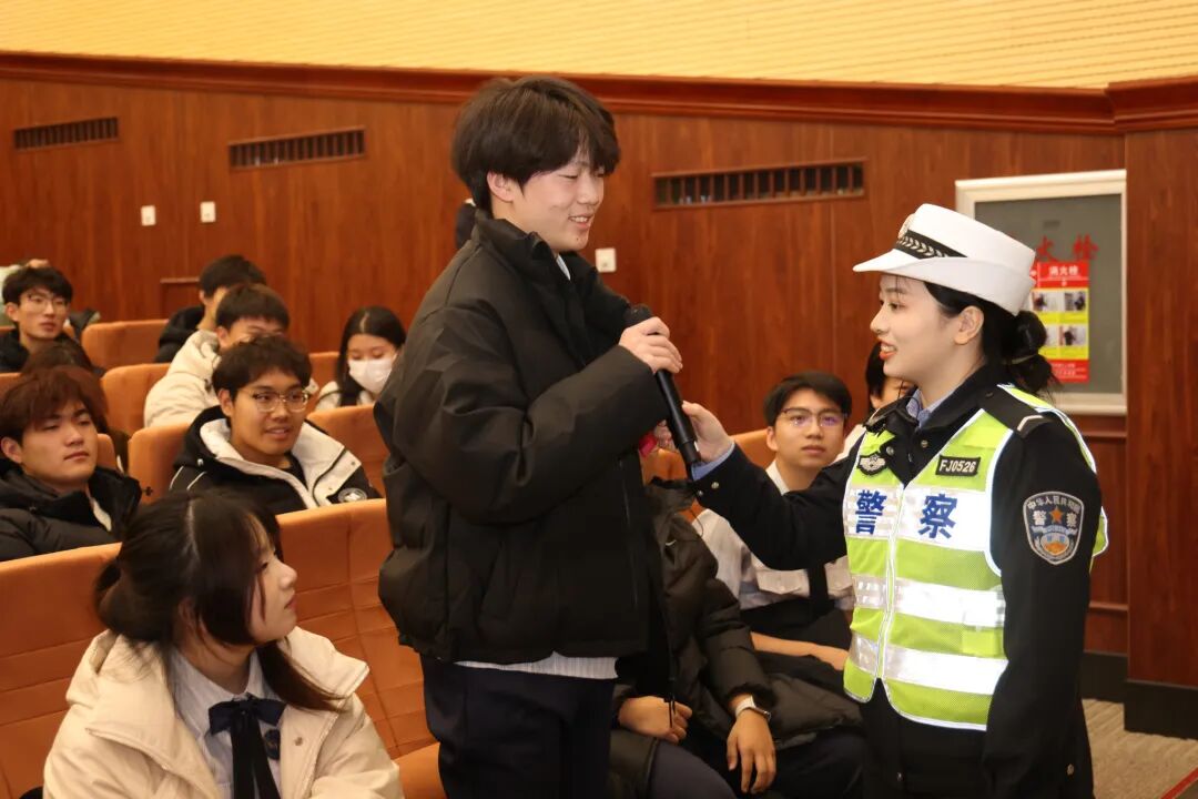 活动中,通过交通安全宣传片,真实的事故画面与数据直观展现交通风险,迅速引发在场人员关注。来自沈抚改革创新示范区交警支队的民辅警们结合典型交通事故案例,深入剖析事故发生的核心根源,用通俗易懂的语言向在场师生详细讲解了各类交通风险的规避方法。互动问答环节中,师生积极参与、踊跃提问,民辅警耐心解答疑惑,将交通安全知识融入趣味互动,有效提升了全体参与者的交通安全风险防范意识和自我保护能力。随后,诗朗诵《忠诚的印记》与小合唱《我愿全心守护你》温情上演,深情诠释了对交通平安守护者的崇高敬意,为活动增添了浓厚的情感氛围。