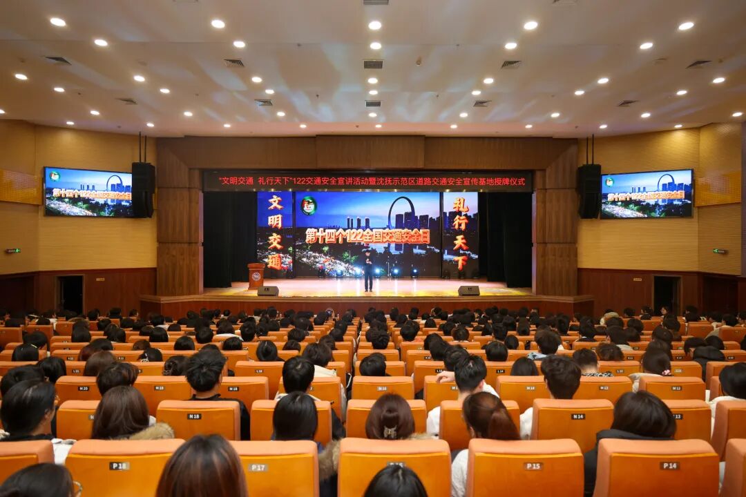 11月28日,“文明交通 礼行天下”122交通安全宣讲活动暨沈抚示范区道路交通安全宣传基地授牌仪式在我校博学馆礼堂举办。沈抚改革创新示范区公安局副局长李嵩,我校副校长石伟、周永昌出席活动。