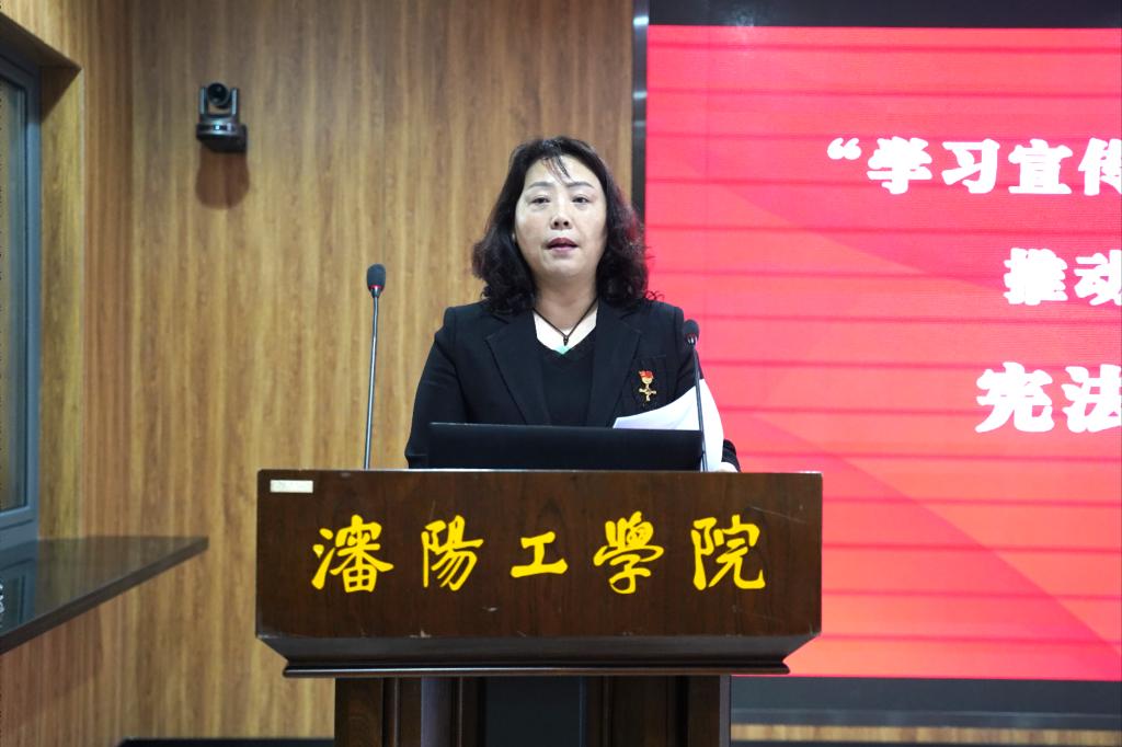 在第十二个国家宪法日来临之际,12月4日,我校在图书馆204会议室举办“弘扬宪法精神 筑牢青春防线”宪法宣传专题讲座。这是我校响应全国普法办号召,落实2025年“宪法宣传周”活动要求,学习贯彻党的二十届四中全会精神的核心举措。抚顺经济开发区人民检察院第一检察部主任赵阳春、副主任宋长余,我校党委委员、副校长石伟出席活动。