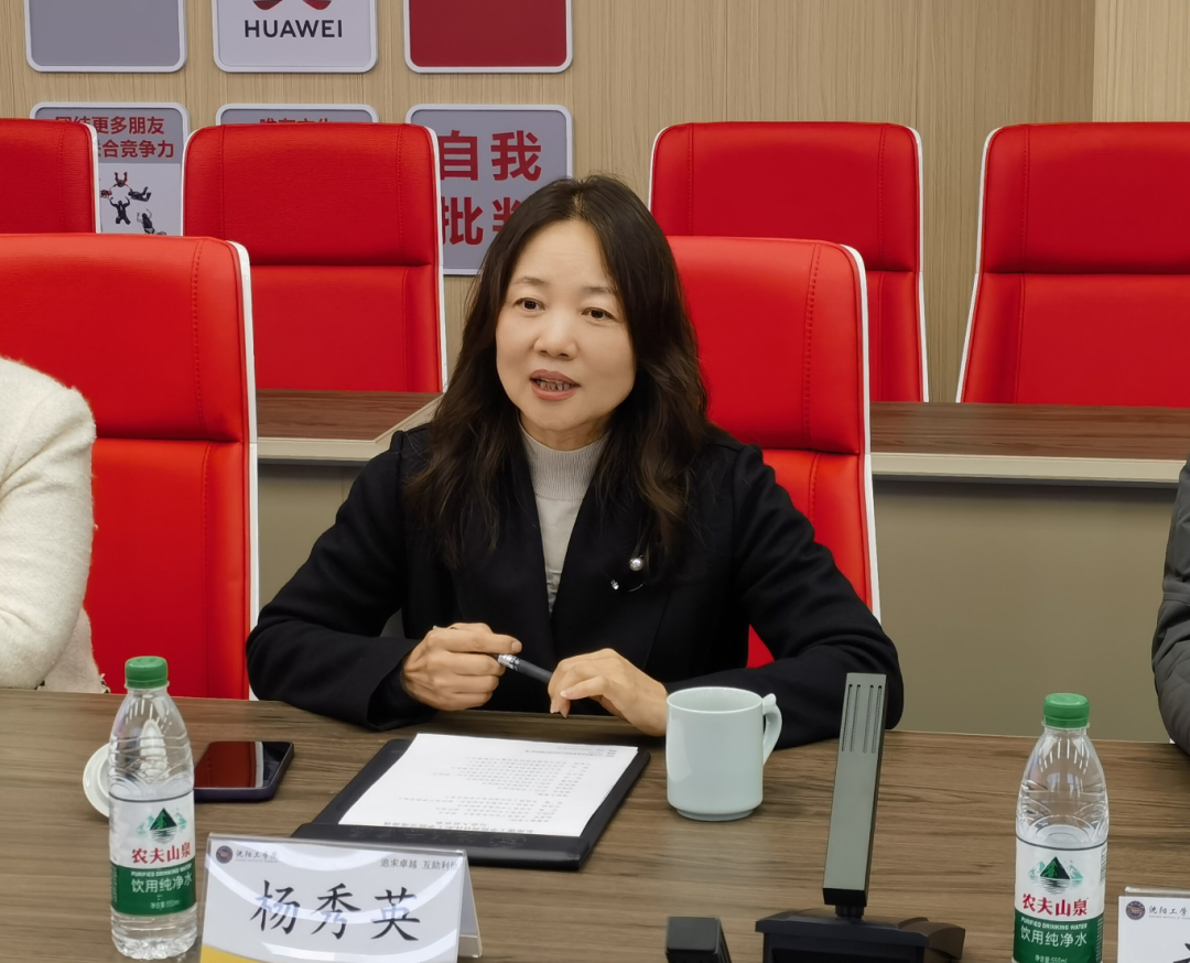 座谈会上,杨秀英对徐勇军一行的到访表示热烈欢迎。她详细介绍了学校的发展历程、办学理念,分享了学校与华为、美的等企业共建的产业学院、数字化转型、国际交流合作、应用型人才培养等方面的经验与思考。