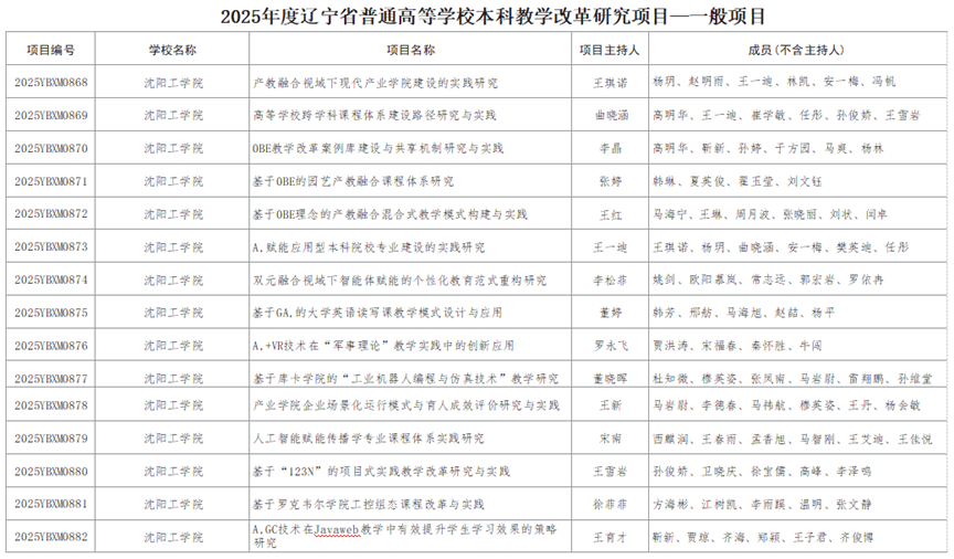 3月19日,根据辽宁省教育厅《关于确定2025年度辽宁省普通高等教育本科教学改革研究项目立项的通知》(辽教通〔2026〕67号)文件内容,我校申报的省级教育教学改革研究项目喜获丰收,王琪诺主持的“产教融合视域下现代产业学院建设的实践研究”等18个项目成功获批。其中,一般项目15项、优质教学资源建设与共享项目2项、中国国际大学生创新大赛优秀成果专项1项,立项成果覆盖多类型、多领域,充分彰显了我校在教育教学改革研究与实践探索中的坚实实力和显著成效。