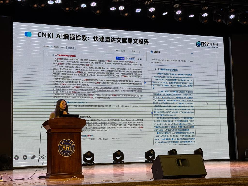 讲座特邀知网金牌讲师马雪担任主讲。她围绕“提效、流程、底线”三个关键词,从检索、写作、发表三个维度展开讲解,结合实操演示与案例分析,系统展示了CNKI AI在学术研究中的实际应用。