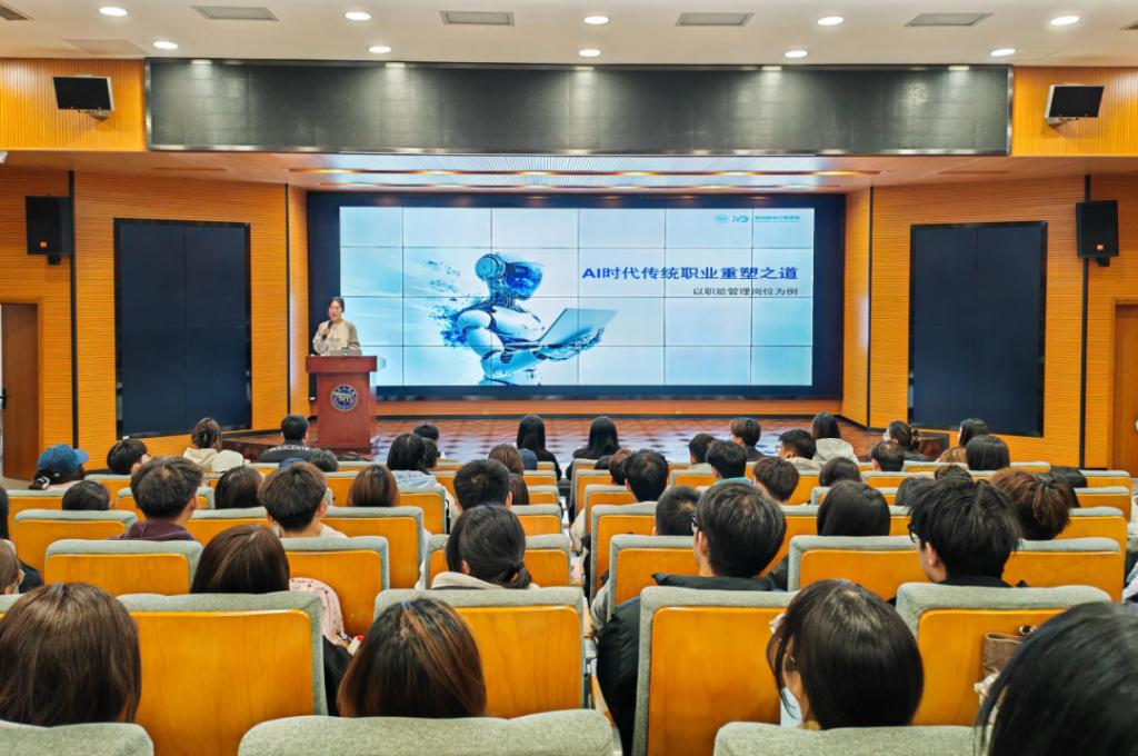 为全面提升学生骨干的数字素养与职能管理能力,推动AI技术与学生工作深度融合,11月7日下午,校团委特邀美的集团-美云智数科技有限公司解决方案顾问谢经洋,在国际教育学院报告厅开展了一场以“AI时代传统职业重塑之道——以职能管理岗位为例”为主题的专题培训。校团委和学生会骨干成员参与学习。