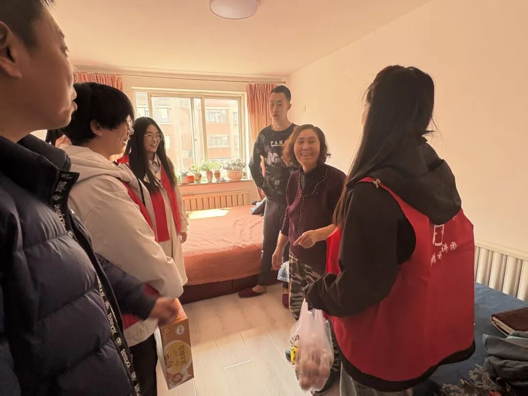 此外,志愿者们还在社区书记的带领下,深入社区困难家庭进行走访慰问,为他们送去生活物资与暖心关怀。大家围坐在老人身边,与他们促膝长谈,耐心倾听老人们讲述生活日常与过往经历,细心询问他们的身体状况、饮食起居和实际困难,叮嘱老人们在季节交替时及时增减衣物、保重身体。一份份物资承载着关爱,一句句问候传递着温情,为困难家庭带去了实实在在的慰藉与鼓舞。