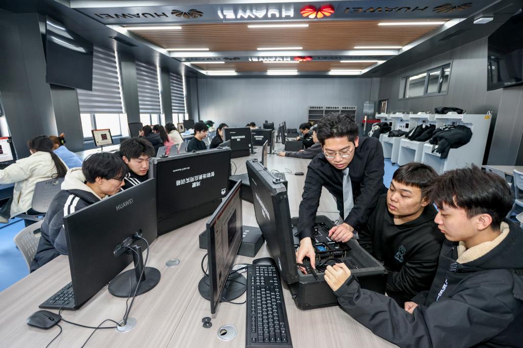 学院依托华为自主技术体系,深化产教融合,通过政校企协同提升社会服务能力,面向在校生及社会人员开设华为认证培训、场景化项目实践及数字化领导力研修班,培养ICT复合型与数字化管理人才。